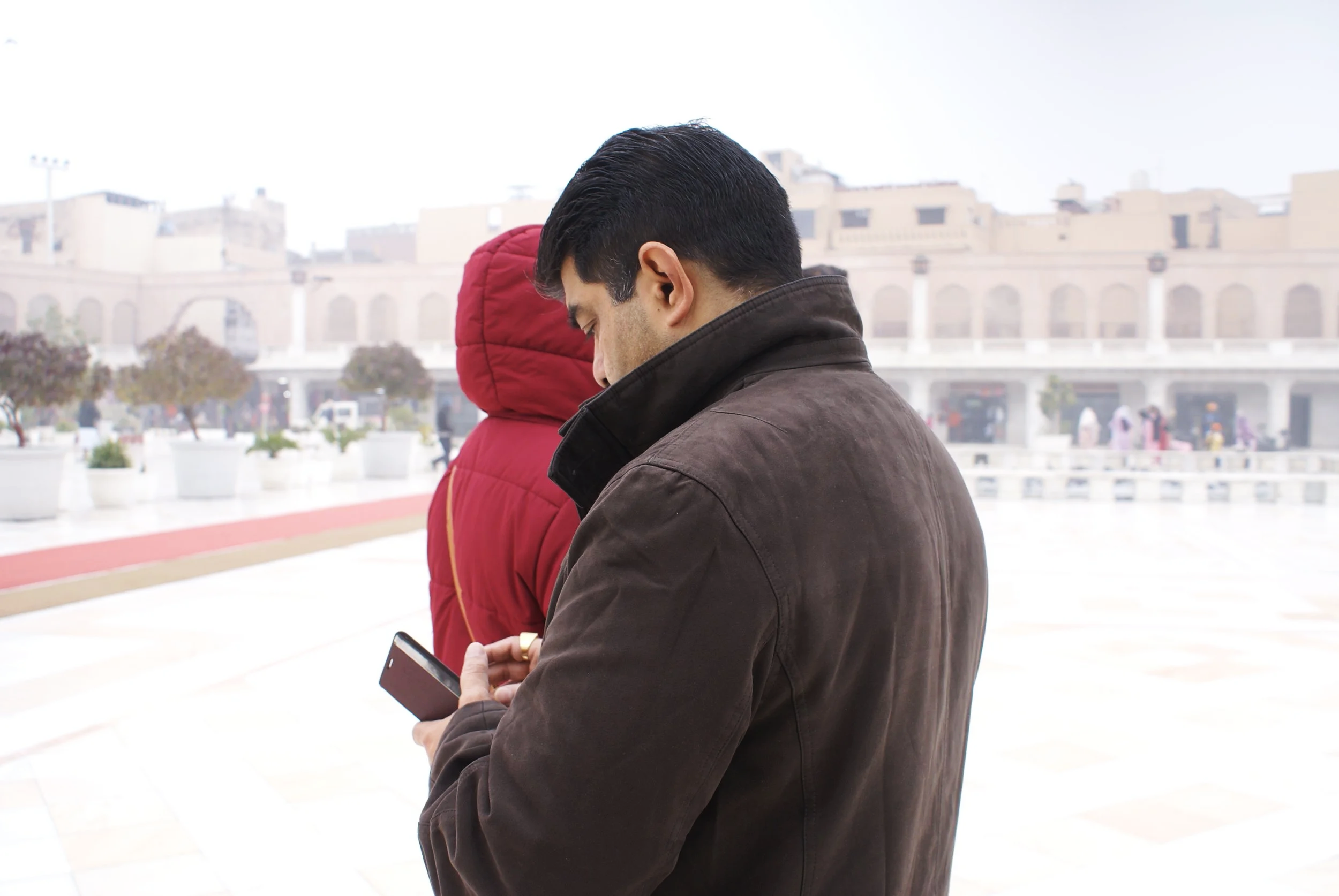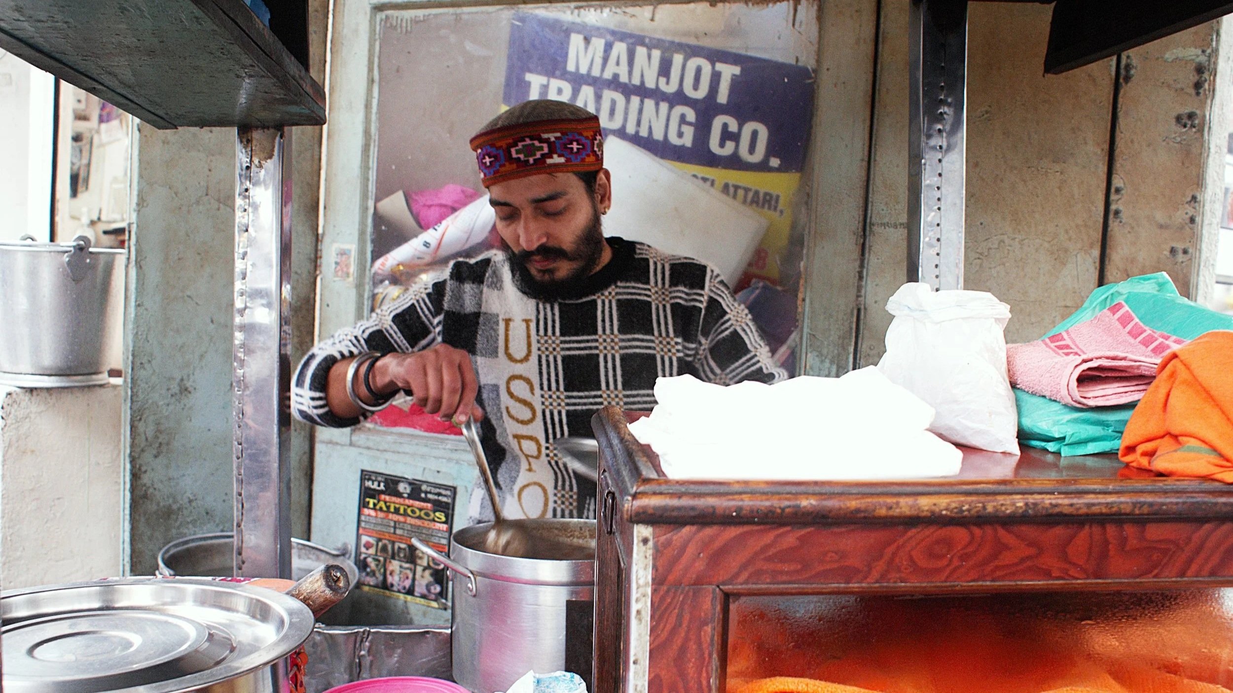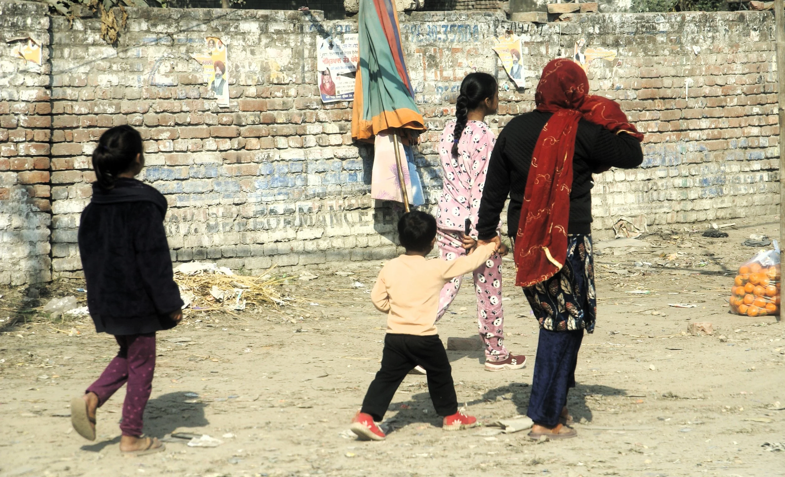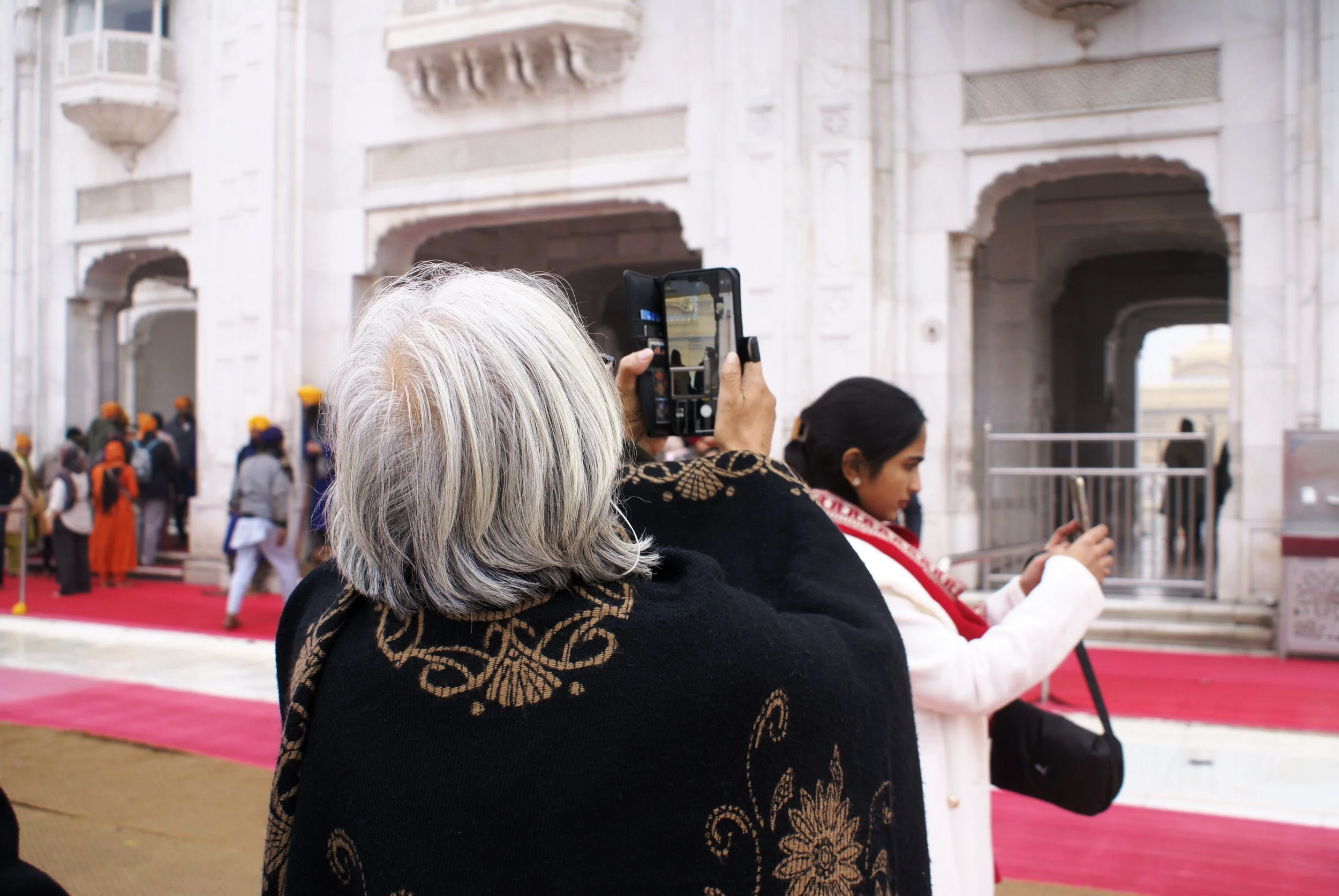 A woman assesses fabric by touch and light in Ludhiana, often described as the textile hub of India.