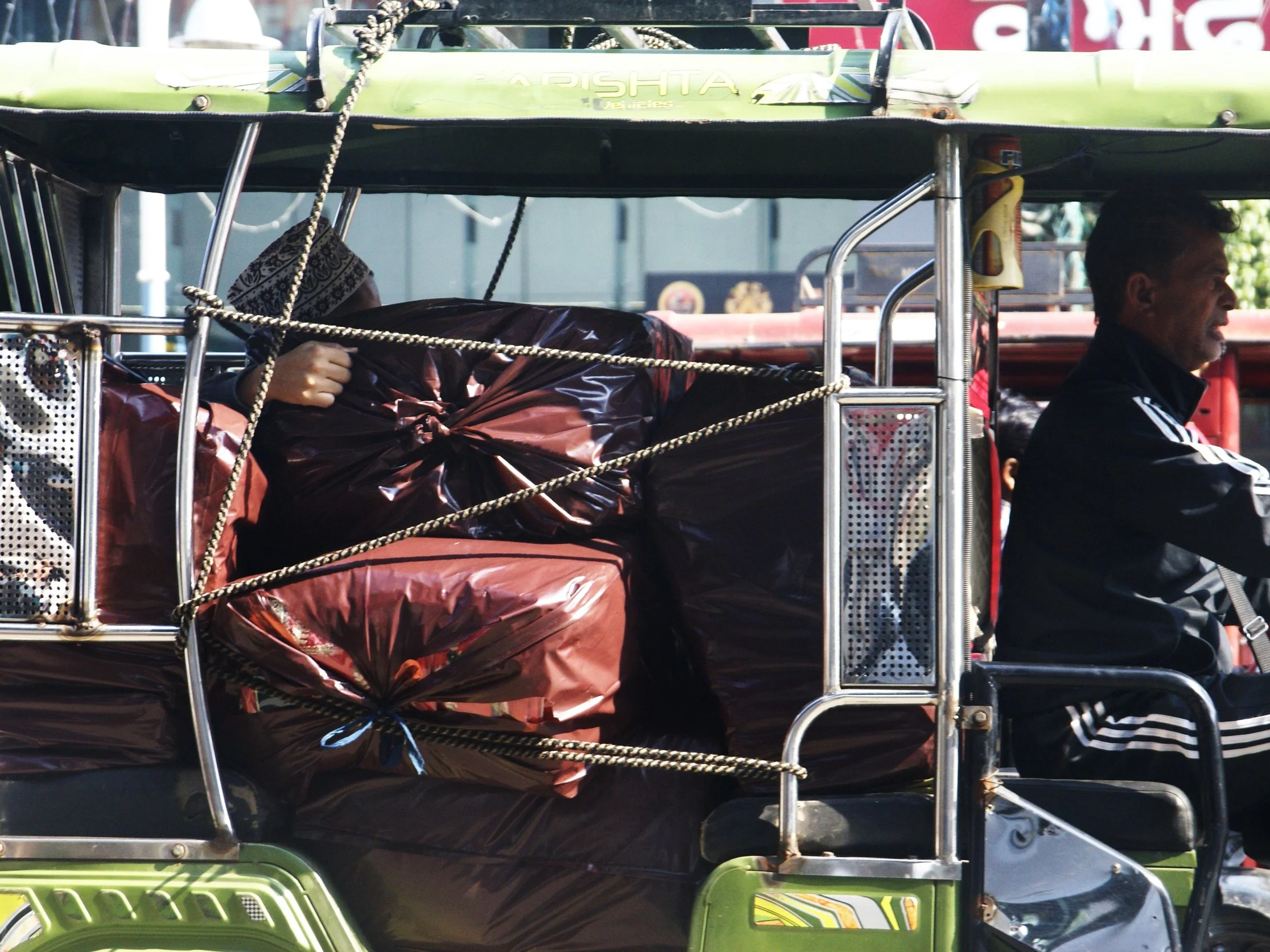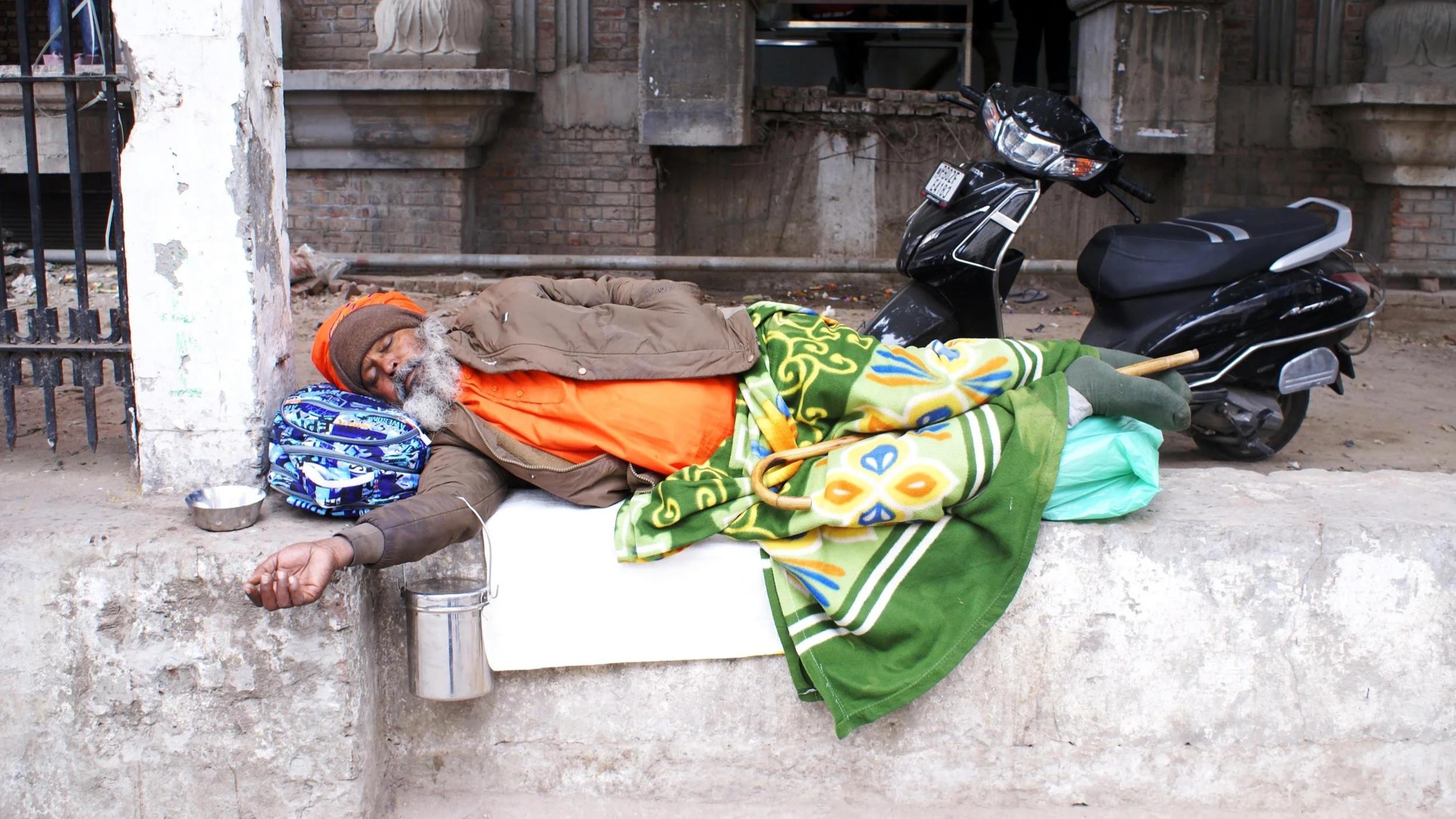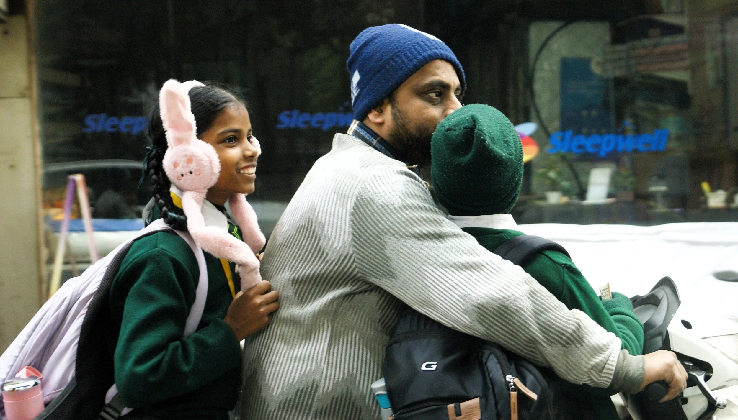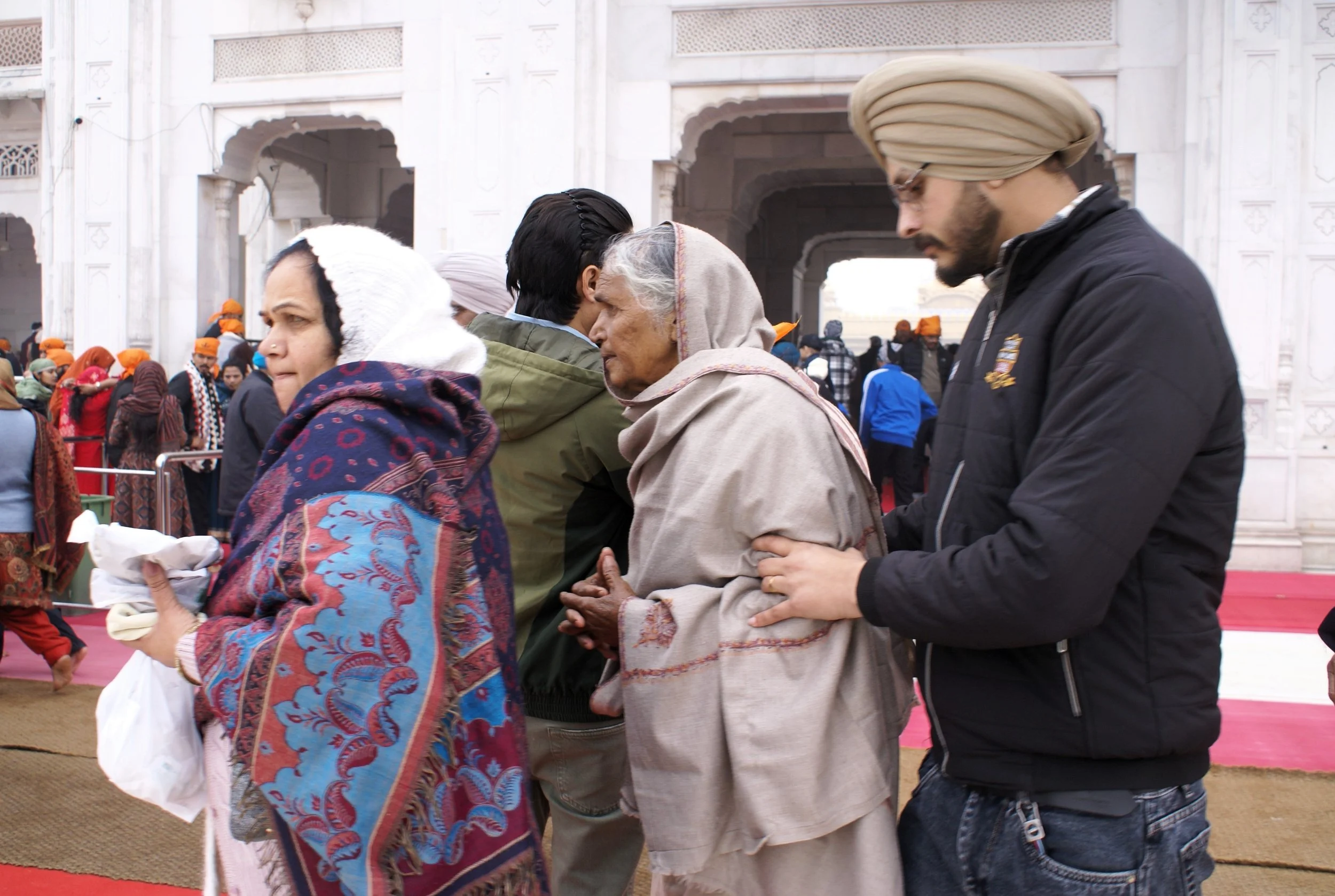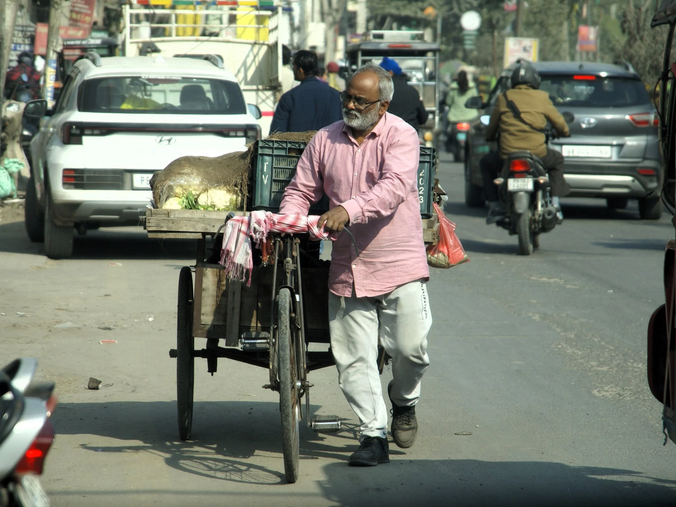 A woman assesses fabric by touch and light in Ludhiana, often described as the textile hub of India.